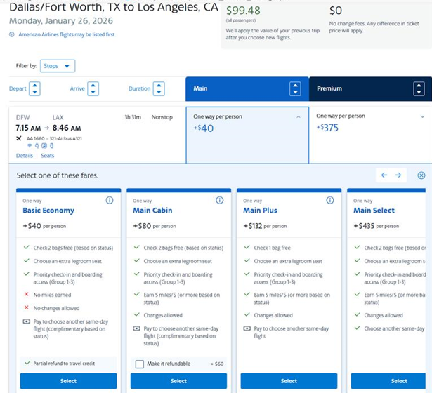 American Airlines is focused on meeting customers’ needs by offering Basic Economy in addition to a wide range of other Main Cabin fares. These low-cost fares provide a simple and affordable way to experience American’s network.